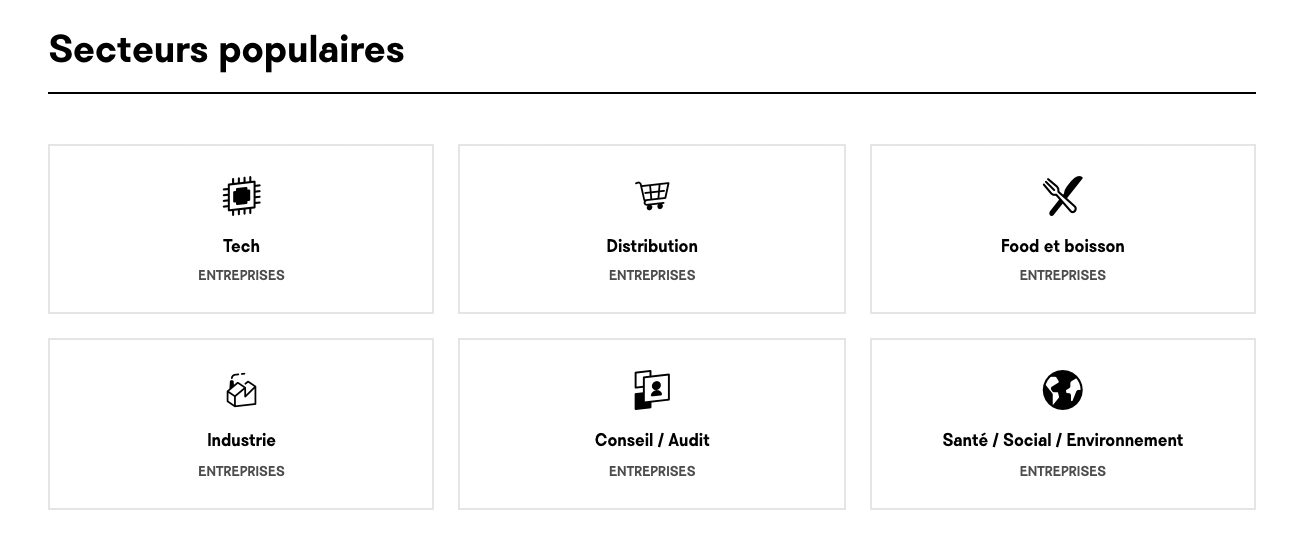 Pour faciliter votre recherche, nous avons organisé les entreprises qui recrutent sur Welcome to the Jungle par secteur et taille :
