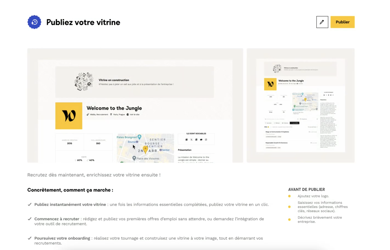 Publier votre vitrine et créer votre première offre d'emploi 💥
