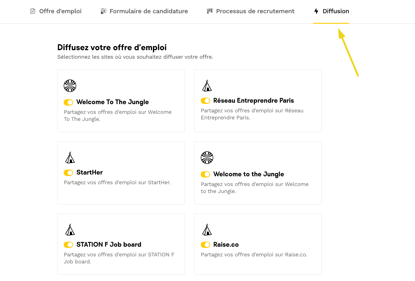 - l'un des job boards partenaires de Welcome to the Jungle (Hub BPI, StartHer, Station F, ...).