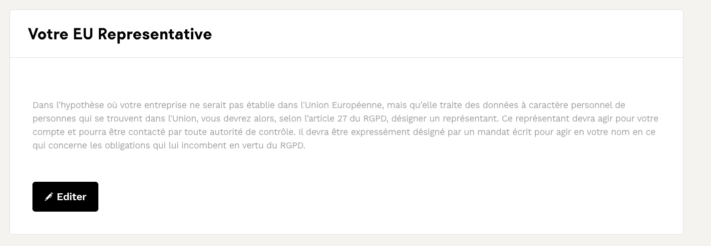 Ce champ vous concerne uniquement si votre entreprise n'est pas établie dans l'Union Européenne mais traite des données de personnes situées dans l'UE :