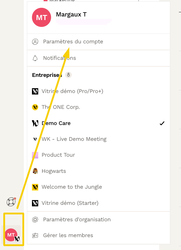 Pour cela, rendez-vous dans les paramètres de votre compte depuis l'icône en bas à droite de l'écran :