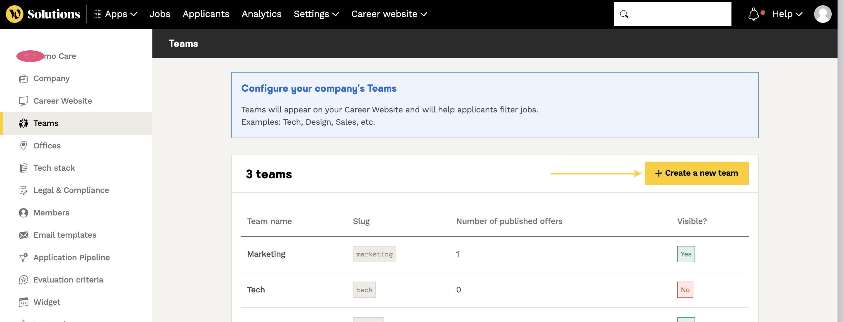 Structurer l'espace Welcome to the Jungle Solutions ATS à l'aide des départements 🖇️