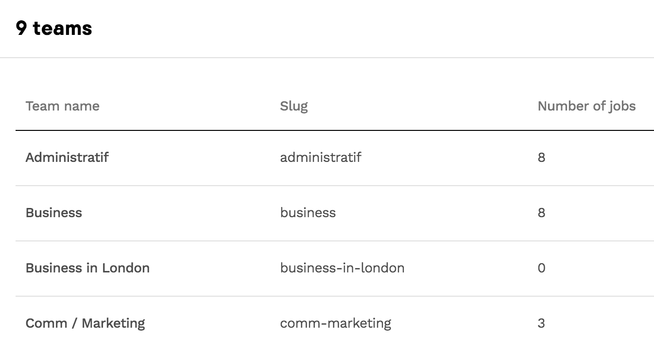 Et il en va de même pour le nombre de licences. C'est pourquoi l'une des premières choses que nous vous conseillons de faire, c'est de mettre en place des départements pour ranger les offres d'emploi au bon endroit.