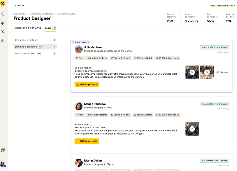 đĄ Maintenant que vous avez pris contact avec diffĂ©rents talents, vous souhaitez analyser vos performances de Sourcing, mais Ă©galement comprendre les raisons de refus de certains.
