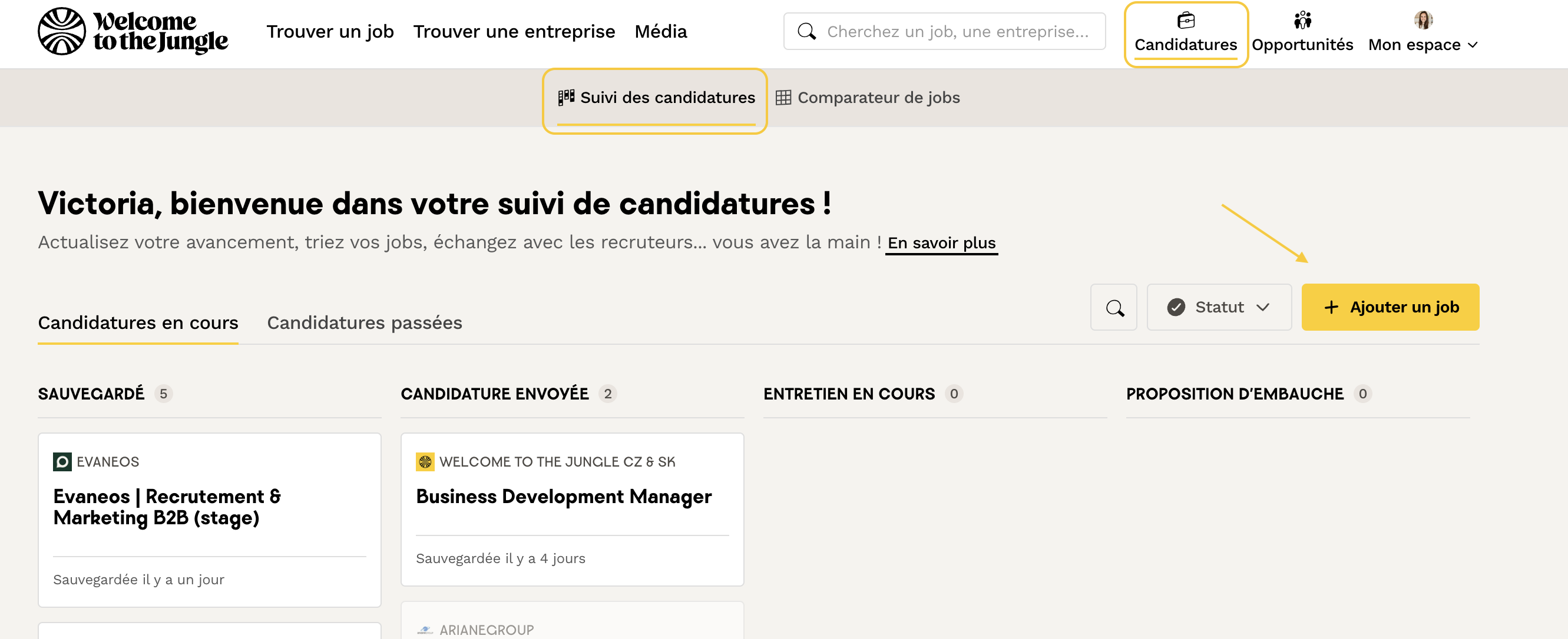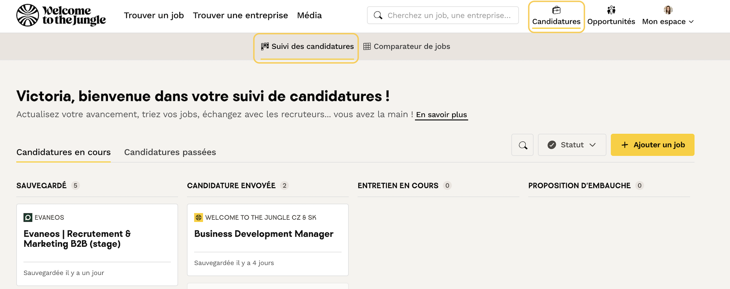 - 🤓 Relire et suivre ses candidatures sur Welcome to the Jungle