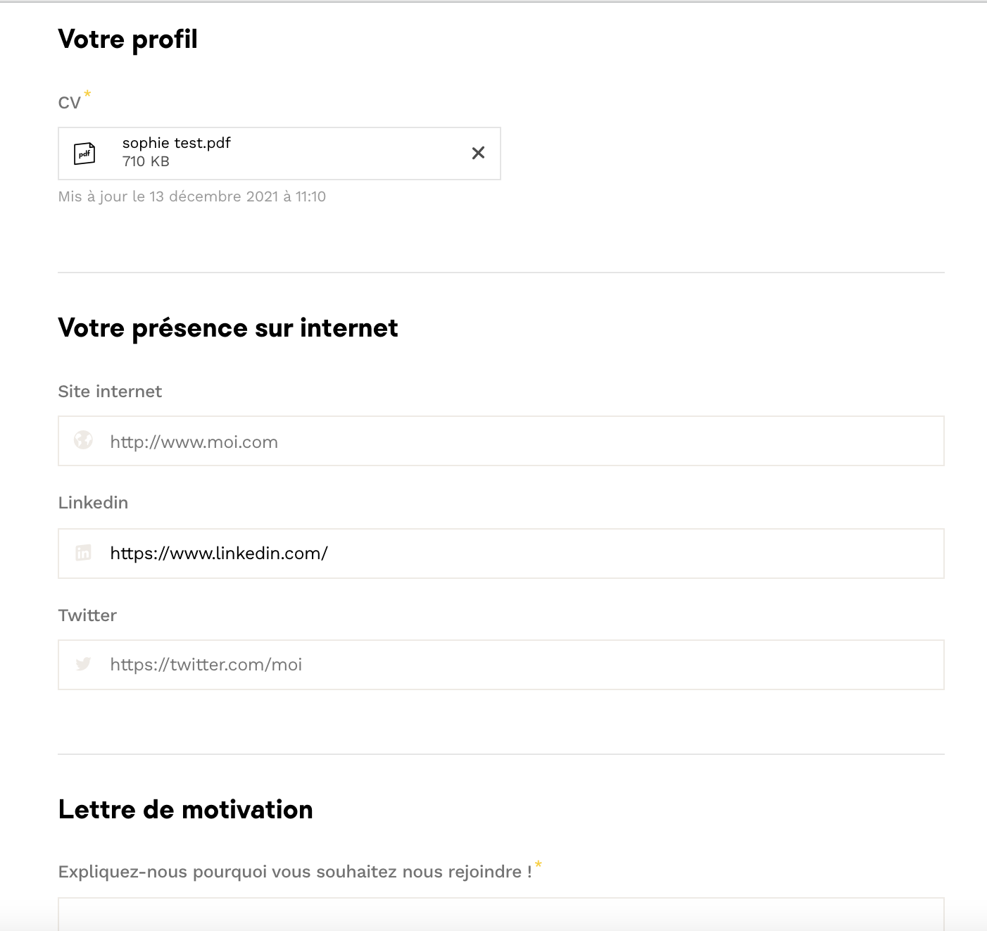 Pour savoir si vous avez bien postulé sur le site de Welcome to the Jungle, vous devriez avoir rencontré un formulaire de ce type :