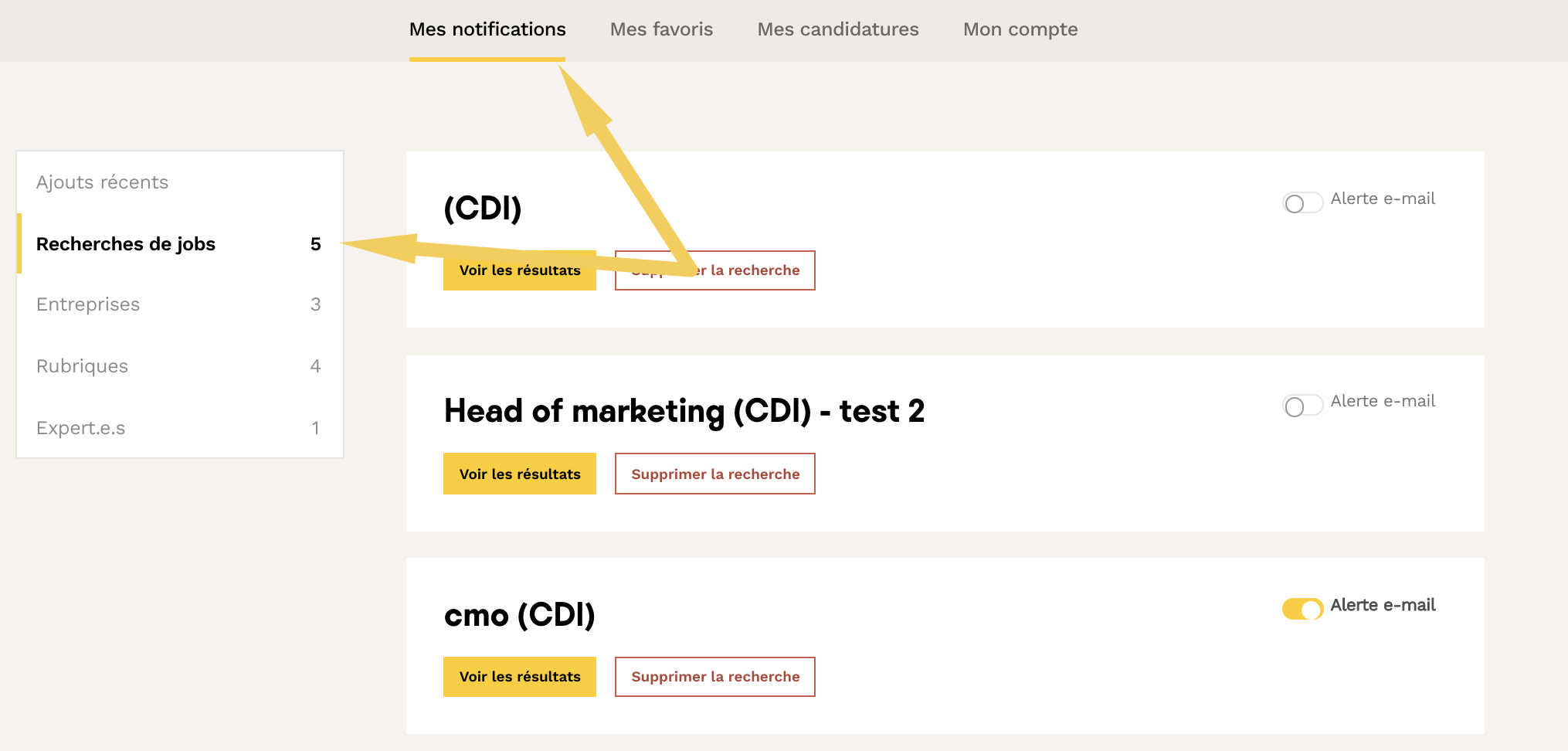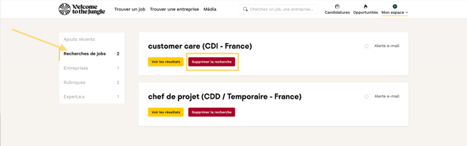 💡 Vous n'êtes pas obligés de supprimer les recherches, vous pouvez simplement désactiver les alertes mails !