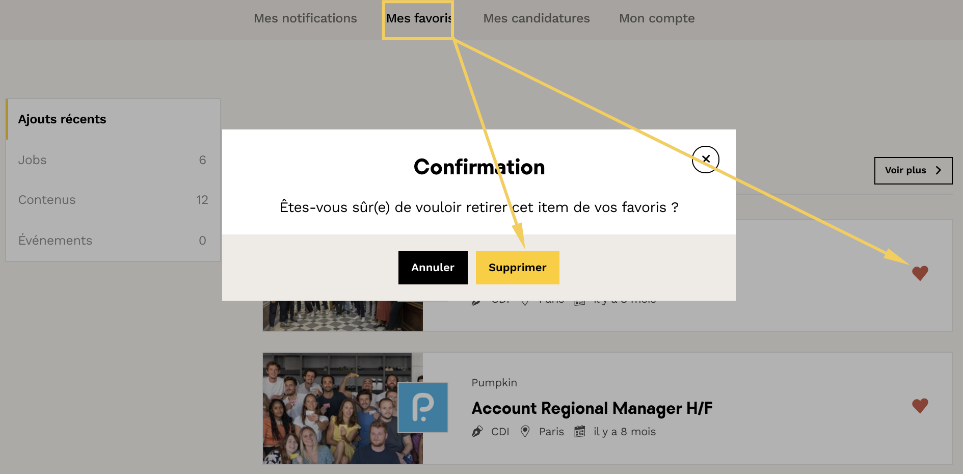 Pour retirer une entreprise ou un job de vos favoris, rien de plus simple :