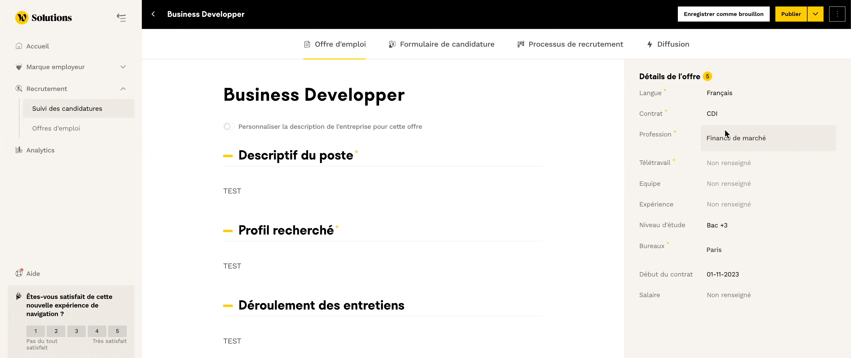 - Testez vos paramètres : Effectuez des recherches candidat pour voir comment vos offres apparaissent