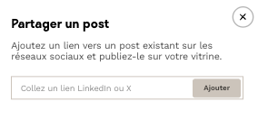 Une fenêtre s'ouvrira ensuite afin que vous puissiez insérer le lien de votre post Linkedin ou X à partager.