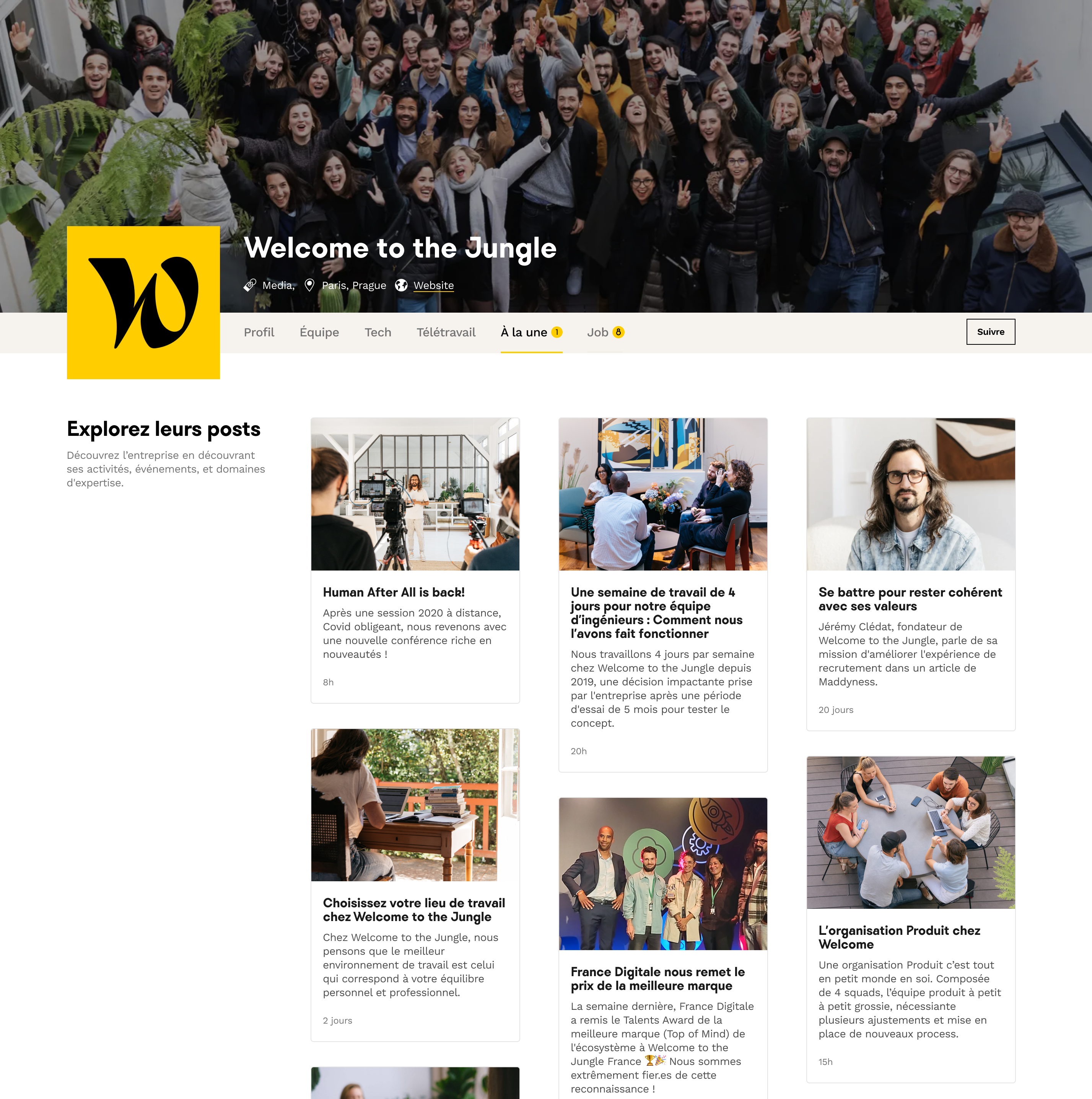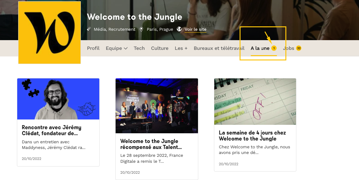 💡 Si vous souhaitez aller plus loin dans l’utilisation de votre vitrine Welcome to the Jungle et booster votre Marque Employeur grâce à la fonctionnalité À la une, cet article est fait pour vous !